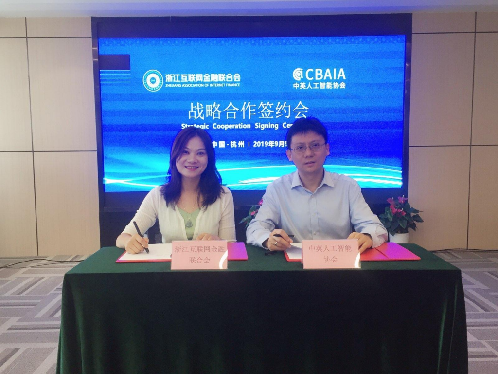 为助力浙江金融科技高地建设和杭州打造全球金融科技中心,加强浙江互联网金融联合会(ZAIF)国际化合作,2019年9月9日,ZAIF与中英人工智能协会(CBAIA)正式签署战略合作协议