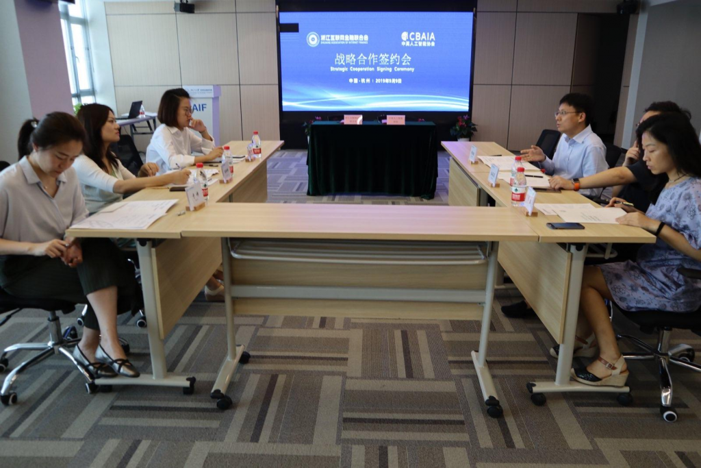 CBAIA浙江办事处揭牌 随后,胡珊珊执行副秘书长代表ZAIF与CBAIA联合创始人谢治凯正式签署了战略合作协议