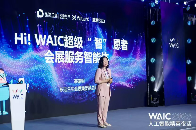 由东浩兰生旗下子公司,威客引力与元数科技共同打造, 智能体Hi!WAIC超级志愿者为展会而生。东浩兰生会展集团股份有限公司副总裁、东浩兰生威客引力总经理、东浩兰生元数科技董事长裘皓明表示,会展集团长期价值的创造,需要知识资产的持续积累以及长期的服务来打造,WAIC作为全球人工智能领域的顶级盛会,在过去七年积累了巨大的数据资源,如何利用这些沉淀资源提升服务能力,拓展生态价值一直是需要思考的问题。Hi! WAIC在今年应时而生,它不仅是人工智能技术的精彩呈现,更是一个智慧的超级大脑,能够将人工智能深度应用于自身的服务,实现人工智能大会的智能升级,打造卓越的智能体验,树立全球标杆。